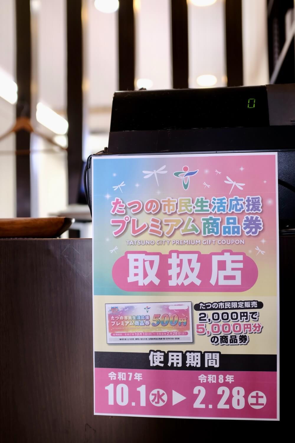 【たつの市民生活応援プレミアム商品券】取り扱いを開始してます(^^)
