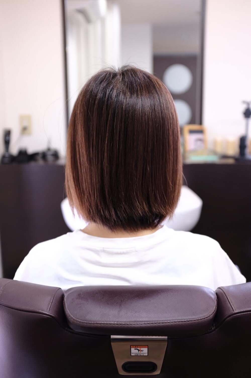 以前、くるくるウェーブパーマもされてたんですが、一旦ストレートに戻したいとのことで、ストレートパーマで真っ直ぐに戻してたんですよね