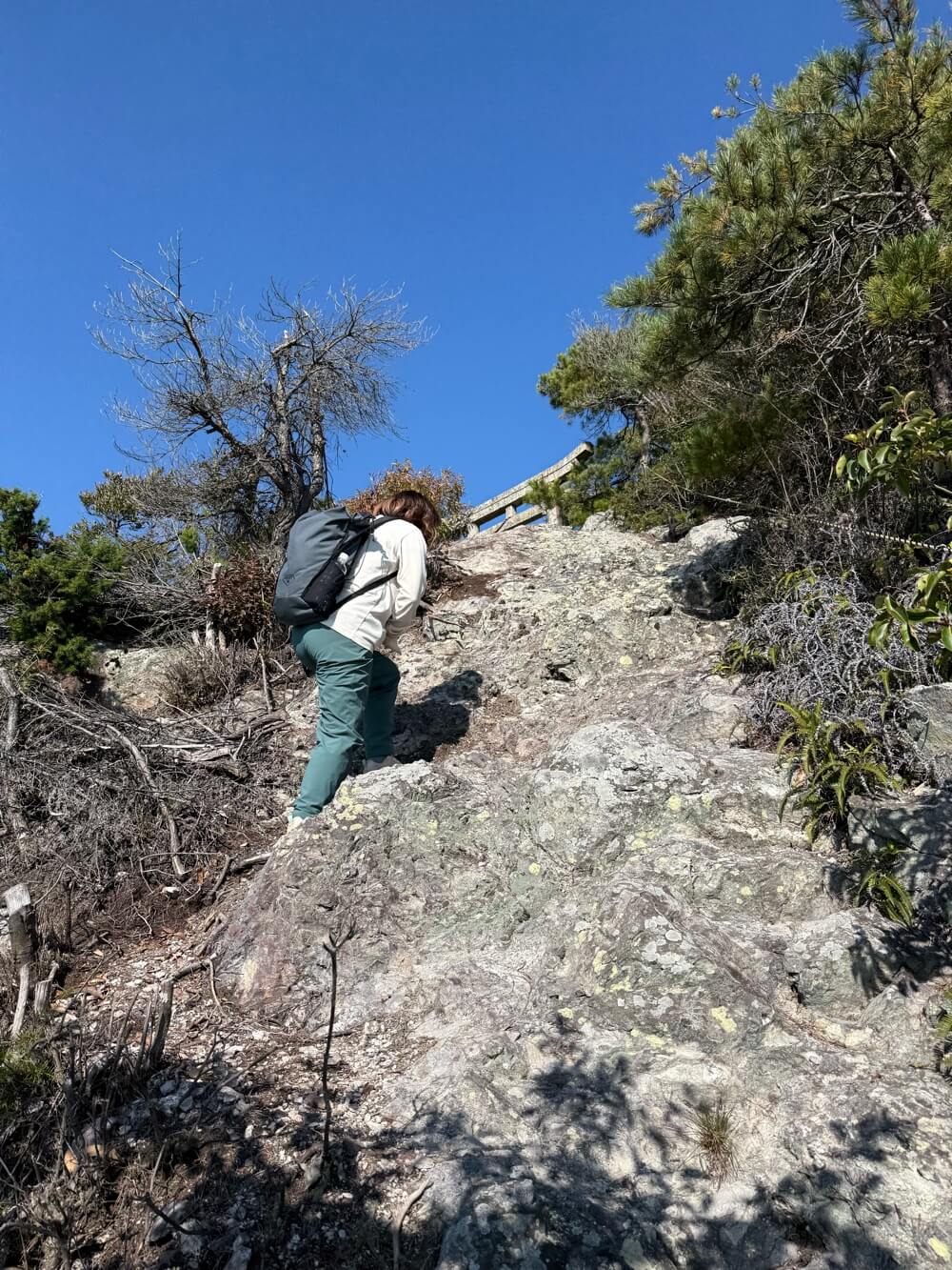 このお山は上りがかなり急で、ということは下りも急ってことですね汗