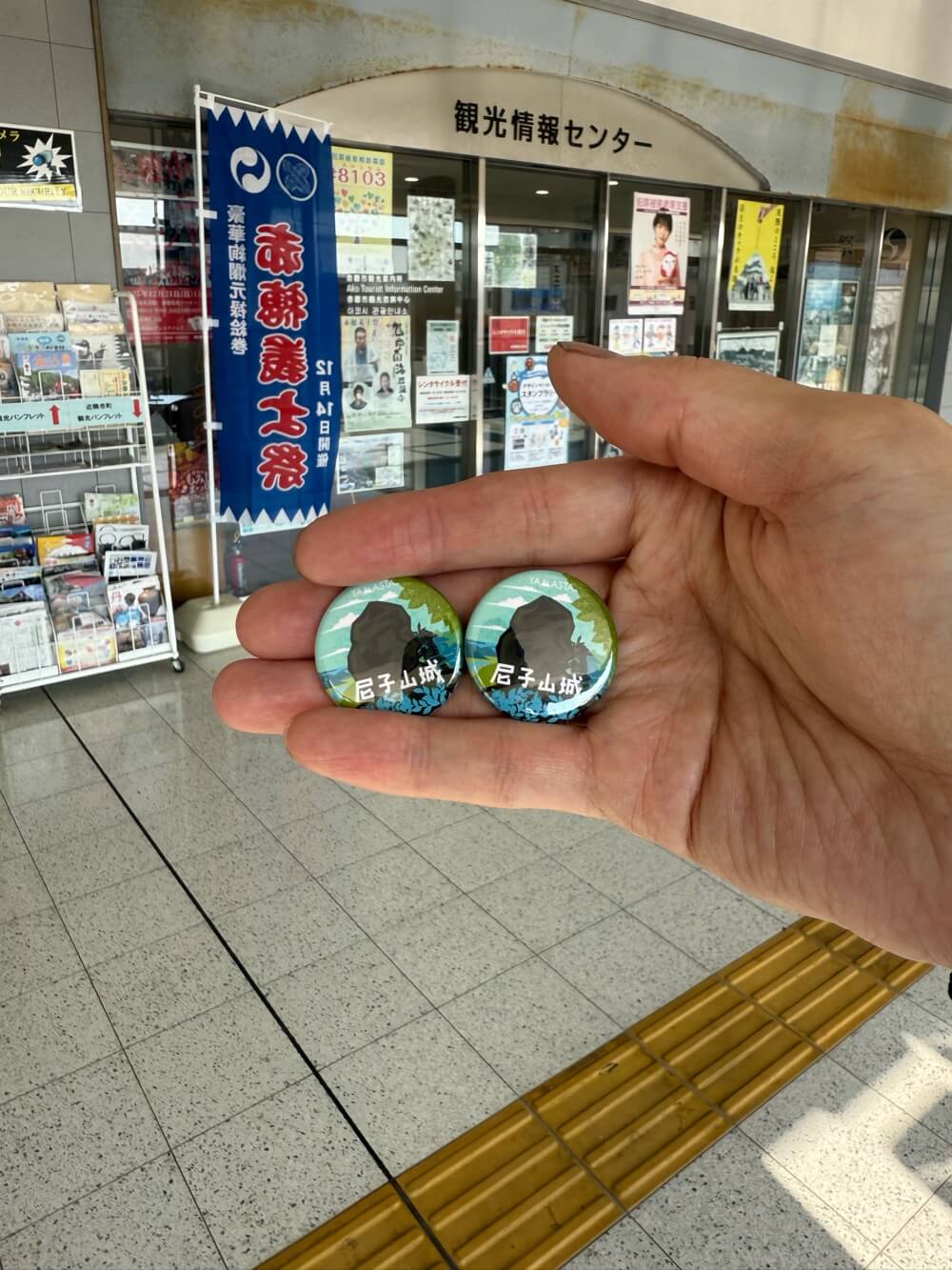 下山後、指定の場所に行くと、缶バッジももらえるんです♪