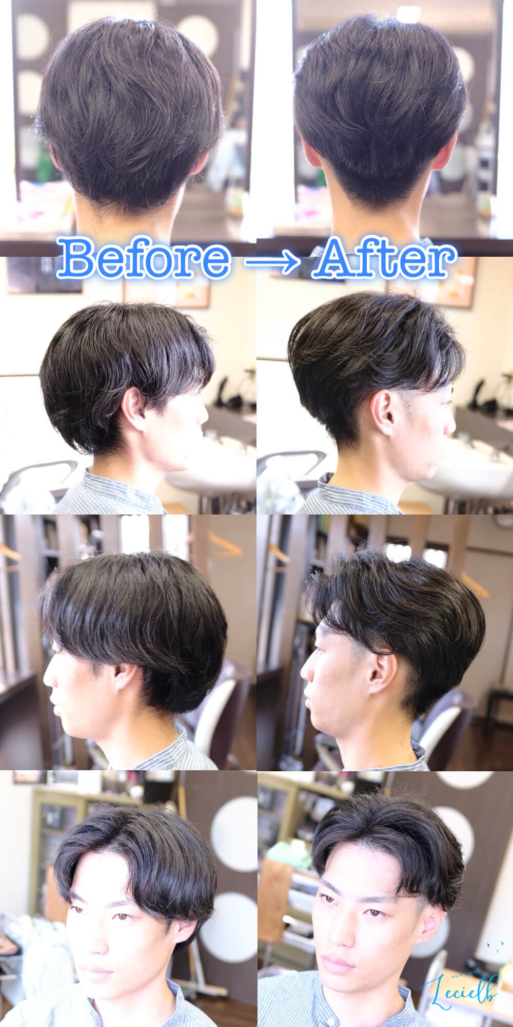 前述のとおり、前のパーマがいい感じで効いてて、流れができてますね〜