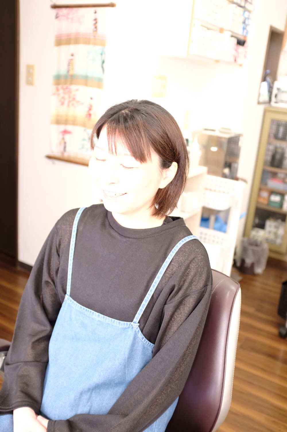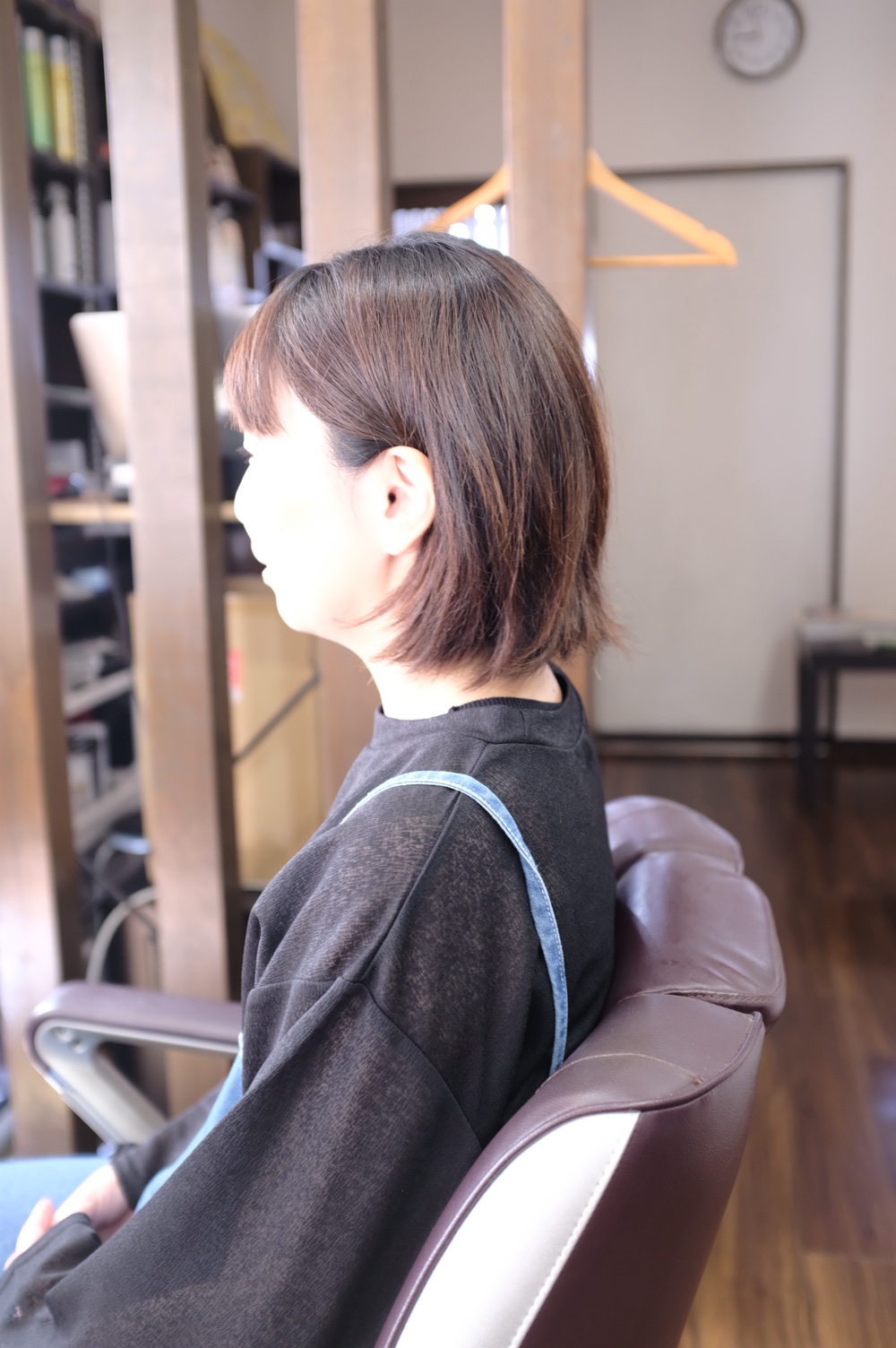 今の耳掛け外ハネボブのスタイルも似合ってて良い感じですね〜