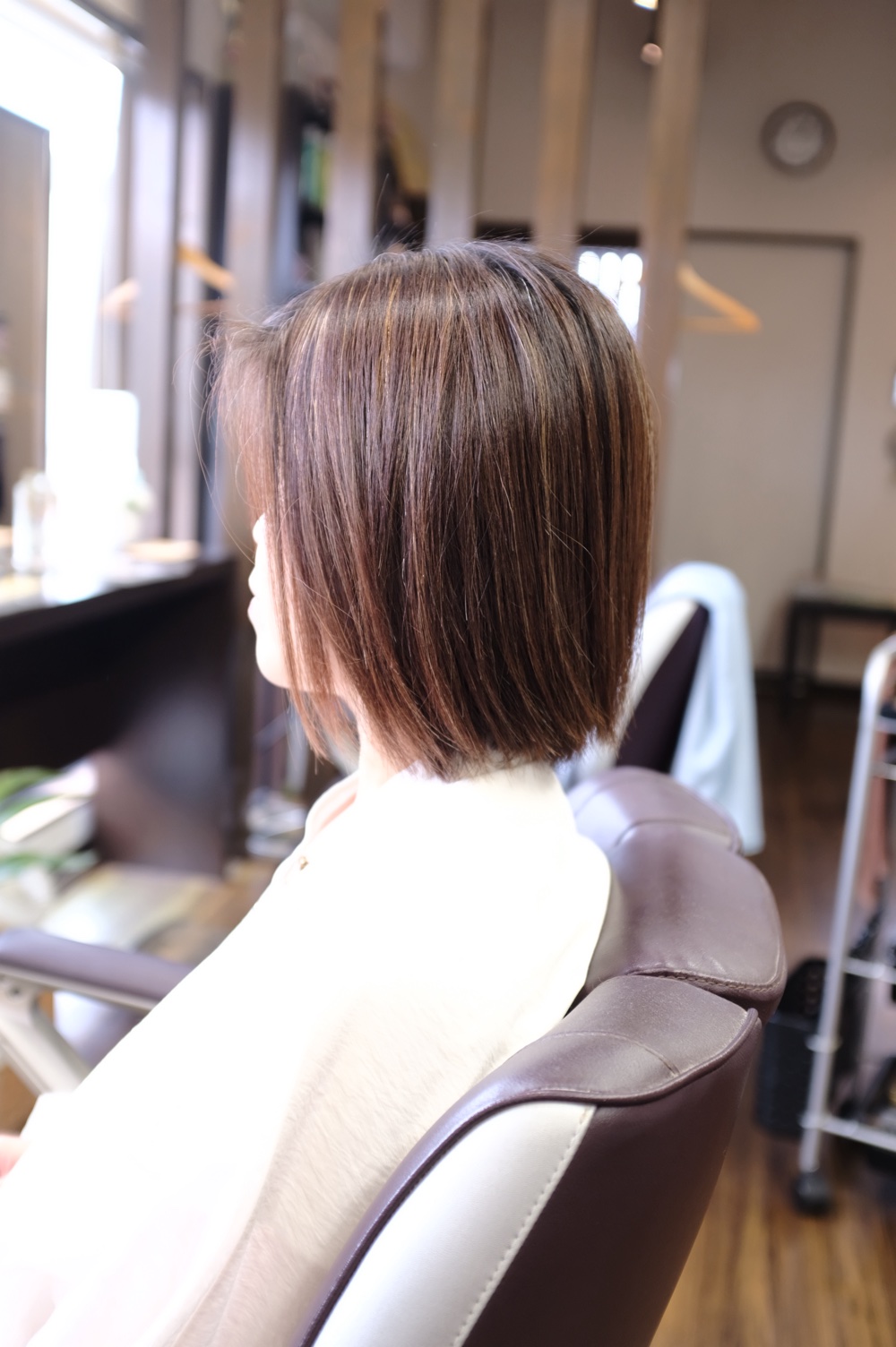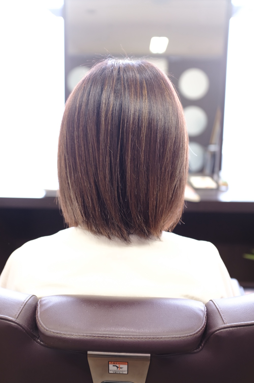 今のように、表面からの髪が毛先で一直線に揃ってる、いわゆる「ボブ」というスタイルだと、よりそういった傾向が強くなりますね。