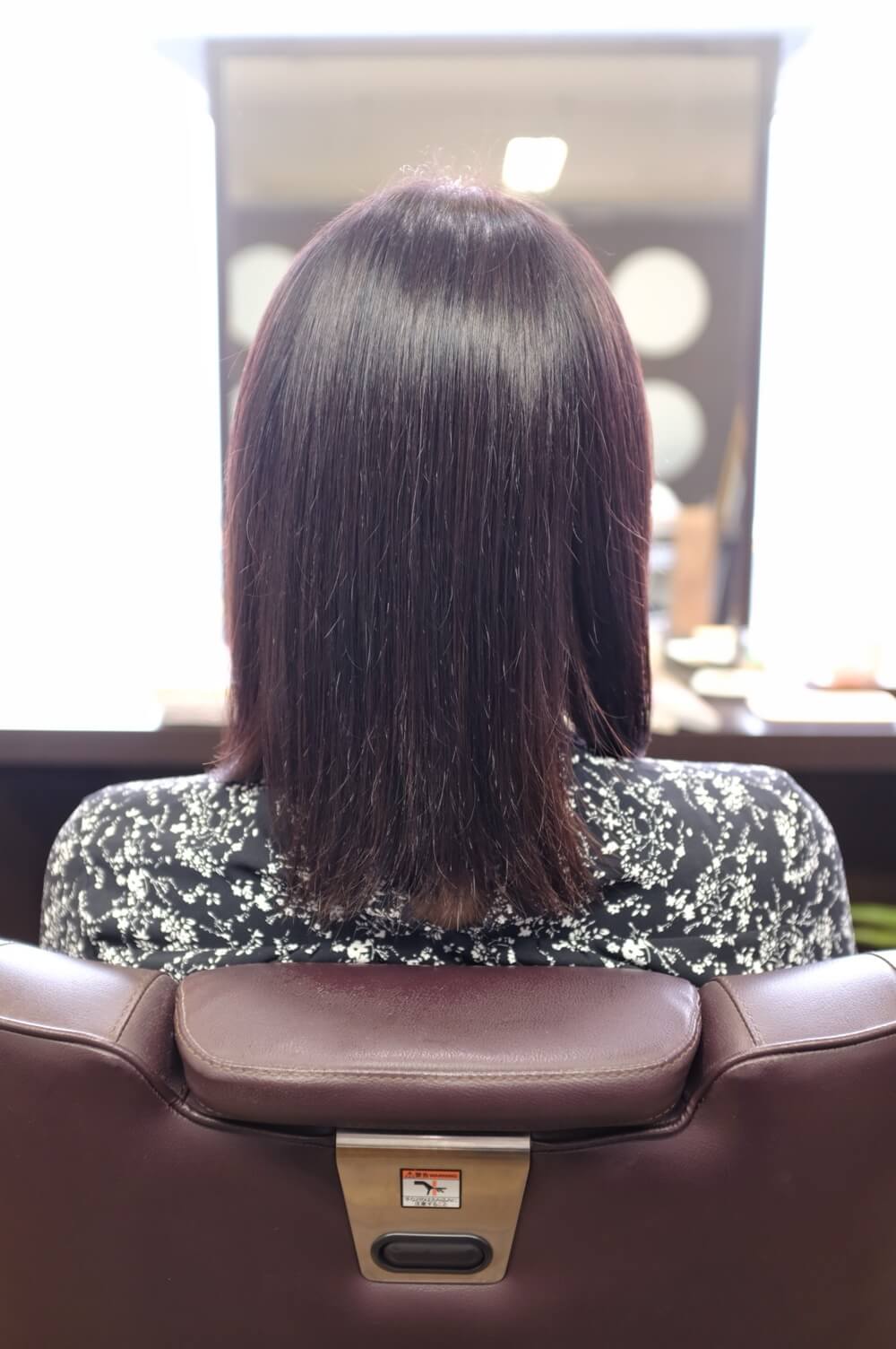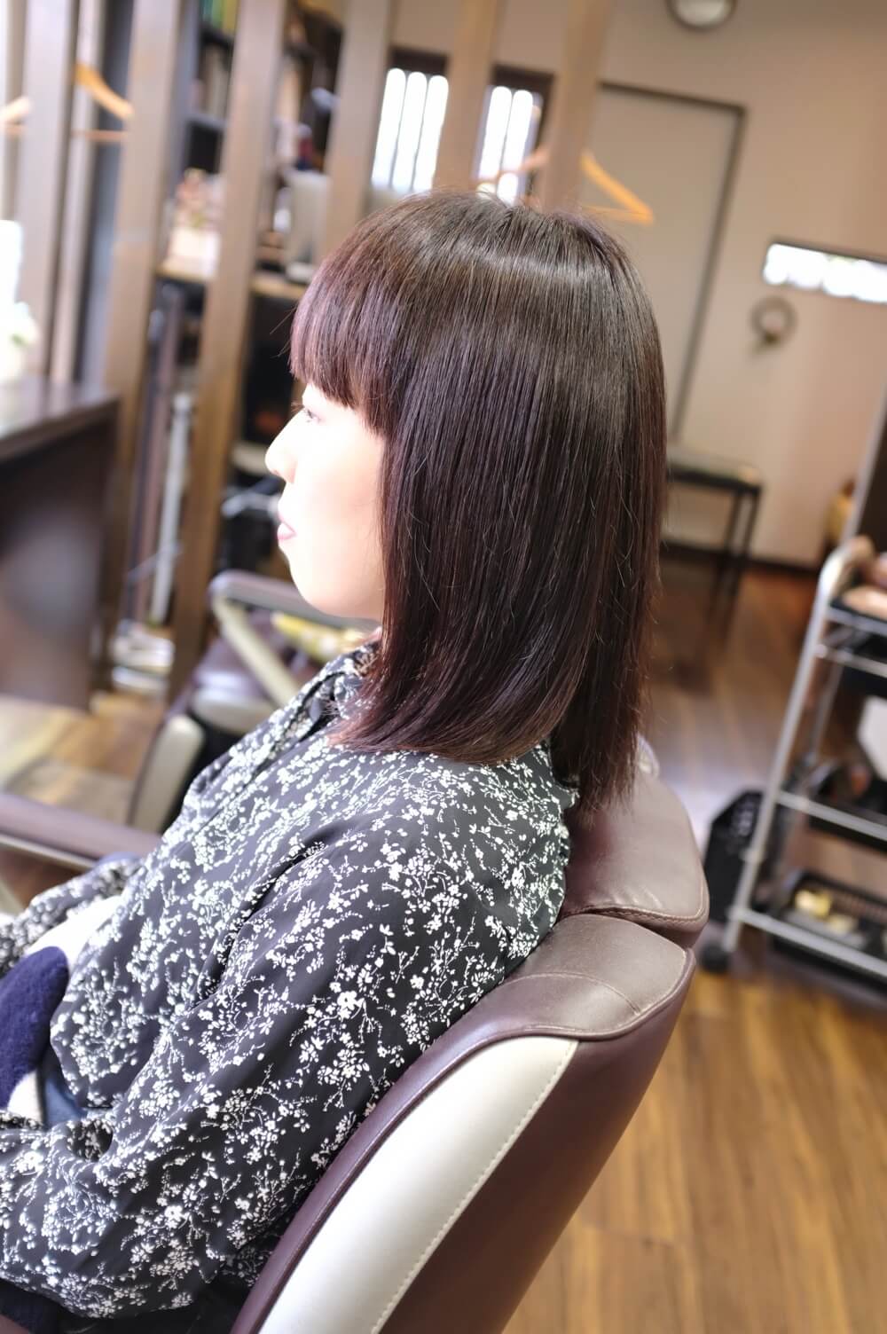 今回特に、毛先や髪表面の毛羽立ちを美しく整える「トリミングカット」を重点的にしました。
