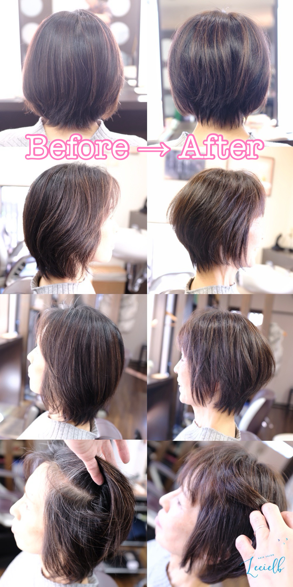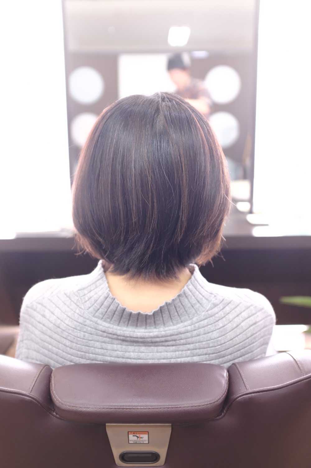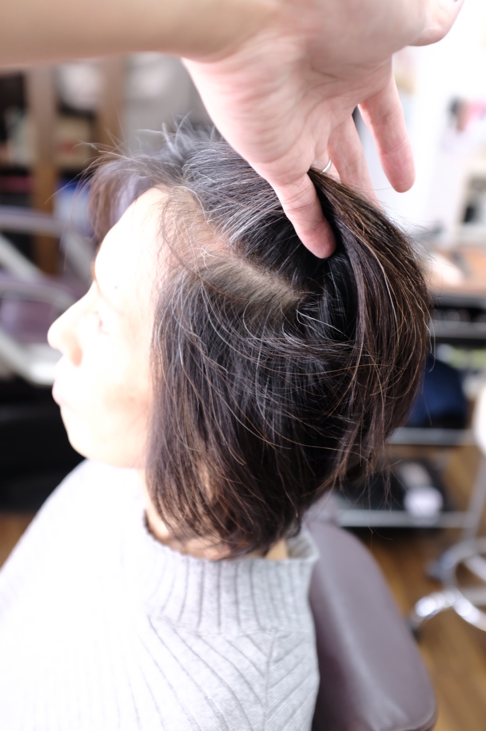 以前からカラーを「ハイライトカラー」させてもらってて、ベースの黒髪をそのまま生かしながら、生えてくる「白髪」をぼかして馴染ませるために、ナチュラルなハイライトカラーをしてたんですよね♪