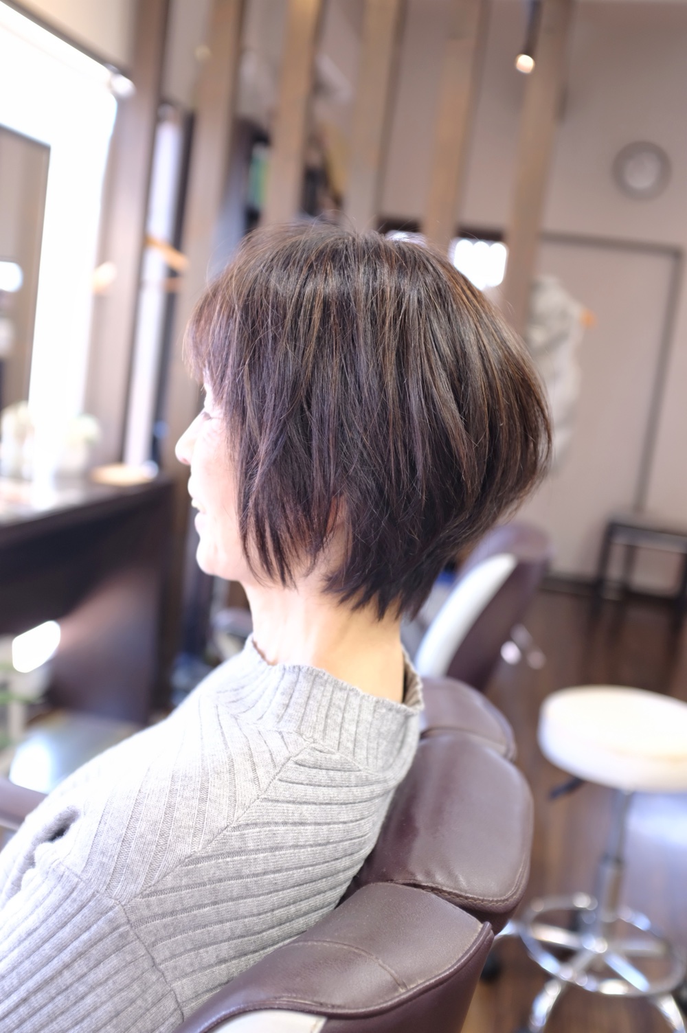 白髪をぼかすハイライトカラーと美麗シルエットショートで大チェンジ♪