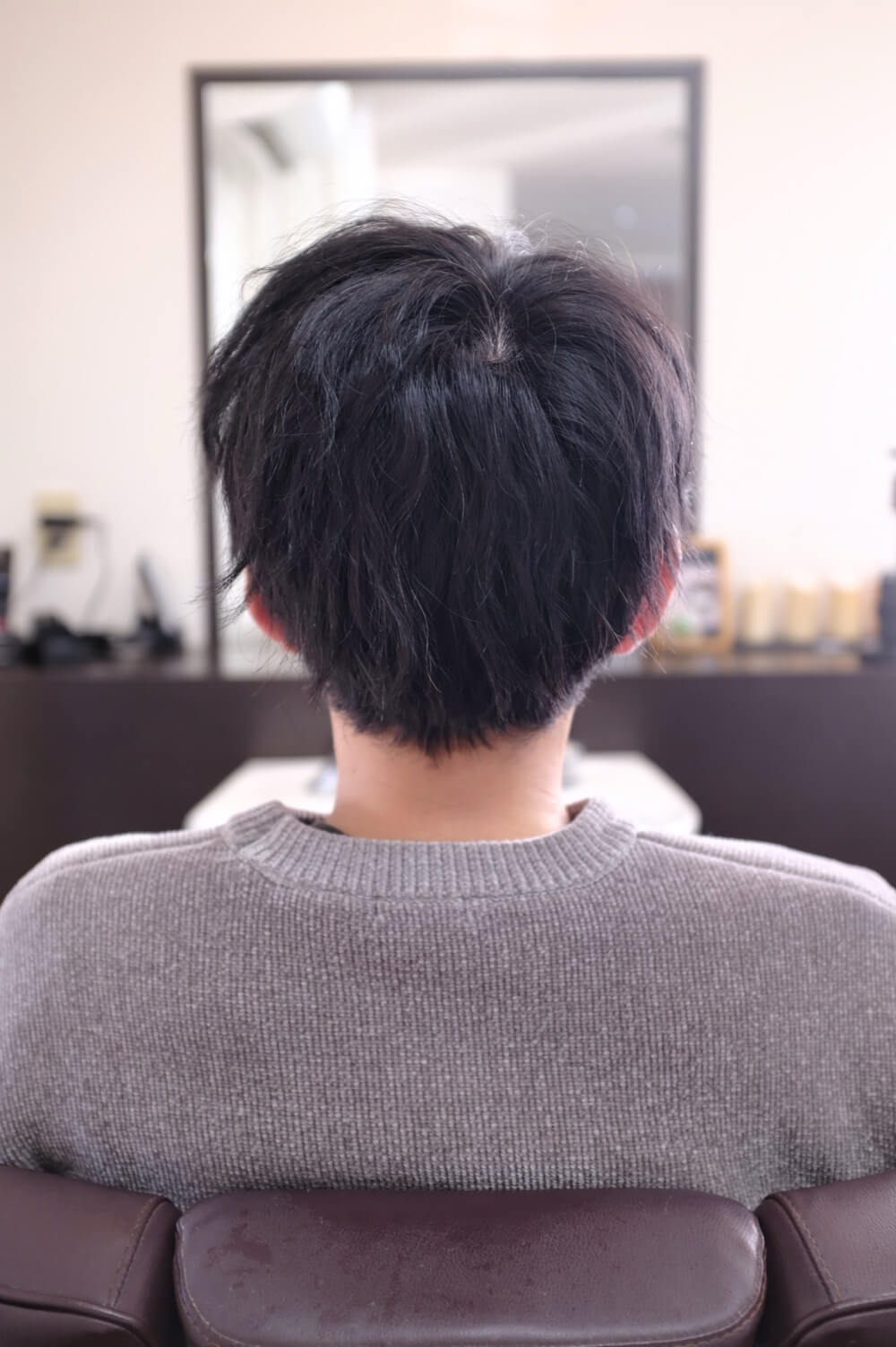 で以前にパーマもさせてもらってて、その名残がまだ毛先とかに残っている状態ですね。