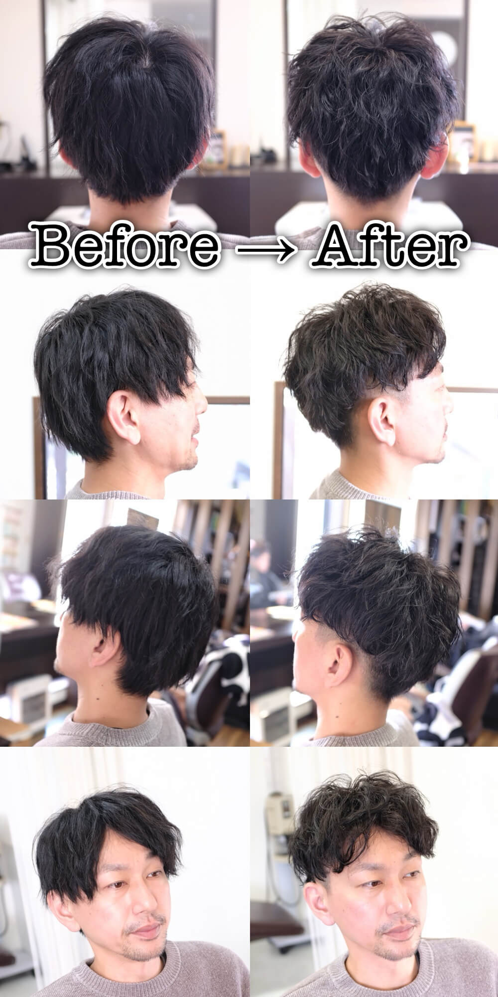 硬い髪のフェードスタイルをハードパーマで馴染ませる