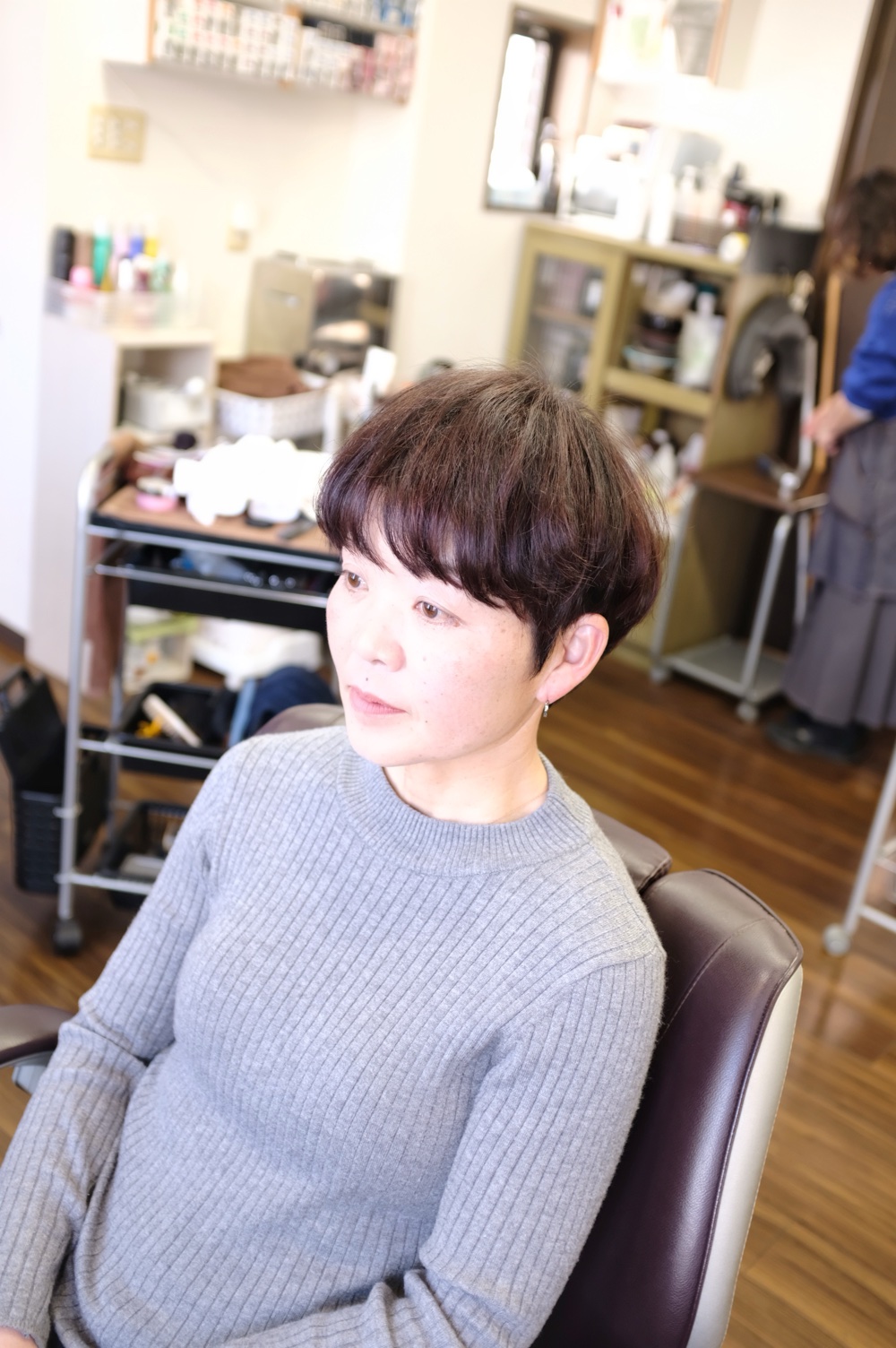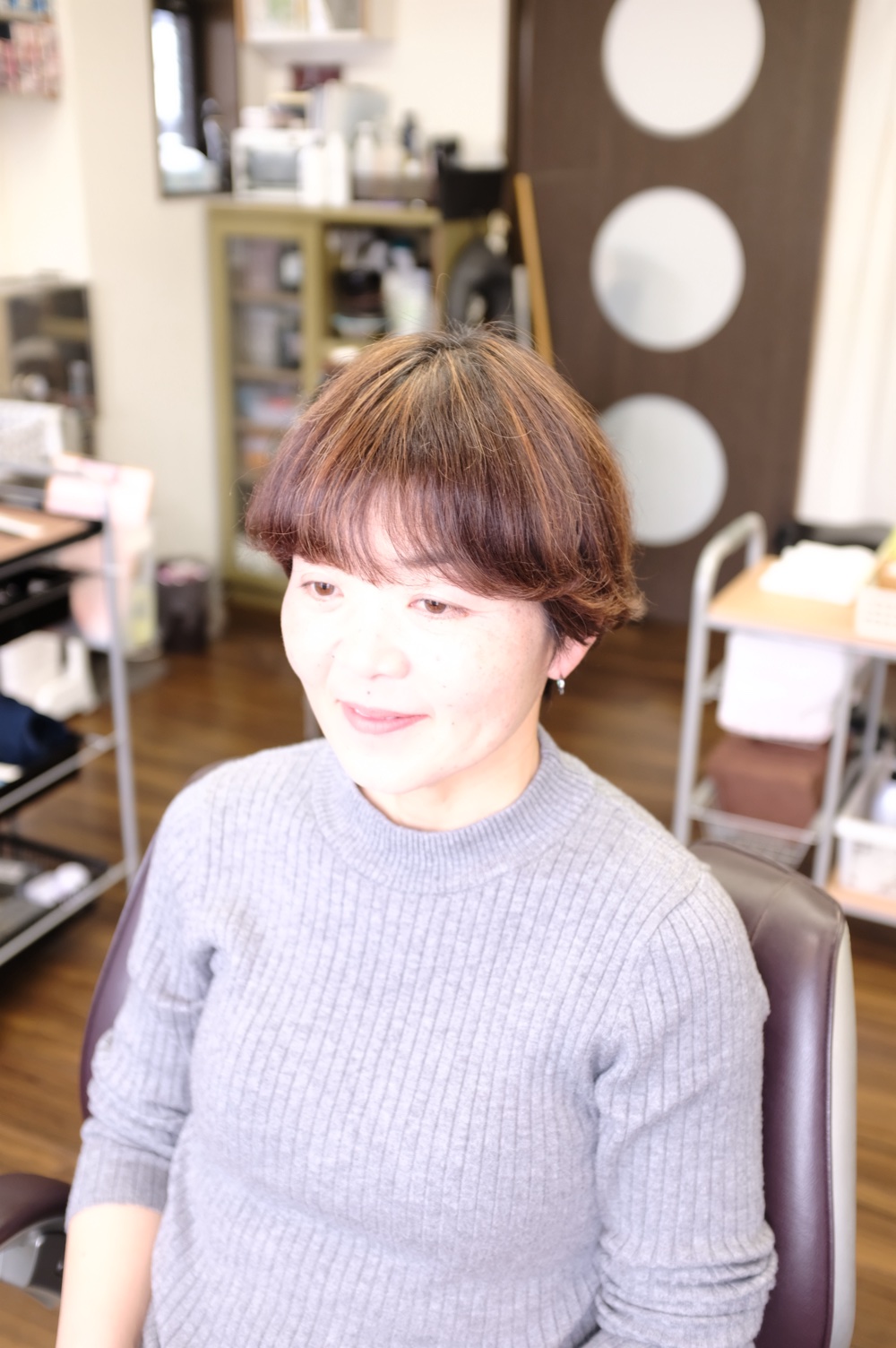 今回は、スッキリ耳出しでカラーも少し落ち着いた感じにチェンジ