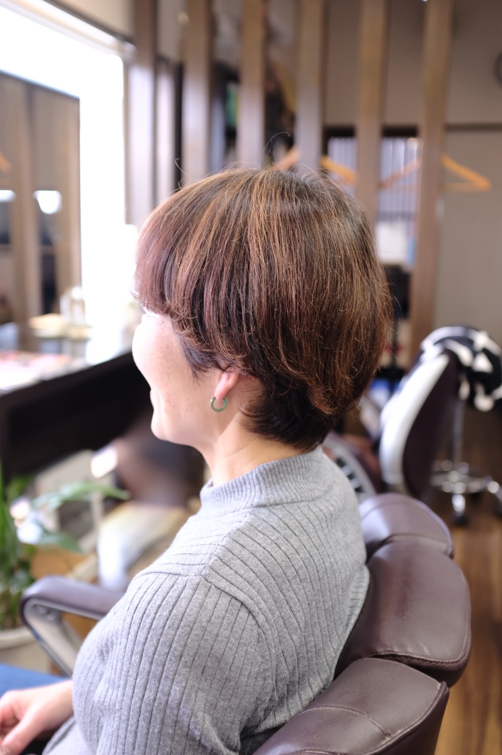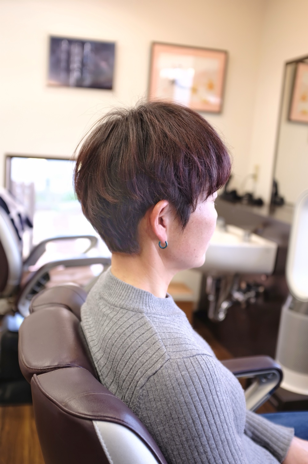 今回は、スッキリ耳出しでカラーも少し落ち着いた感じにチェンジ